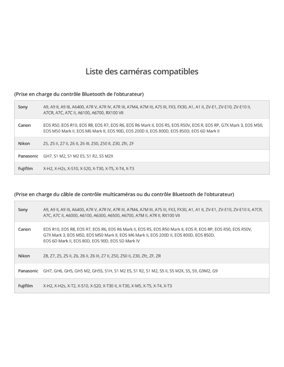 - 1x Câble de contrôle multicaméras (USB-C, 30 cm)